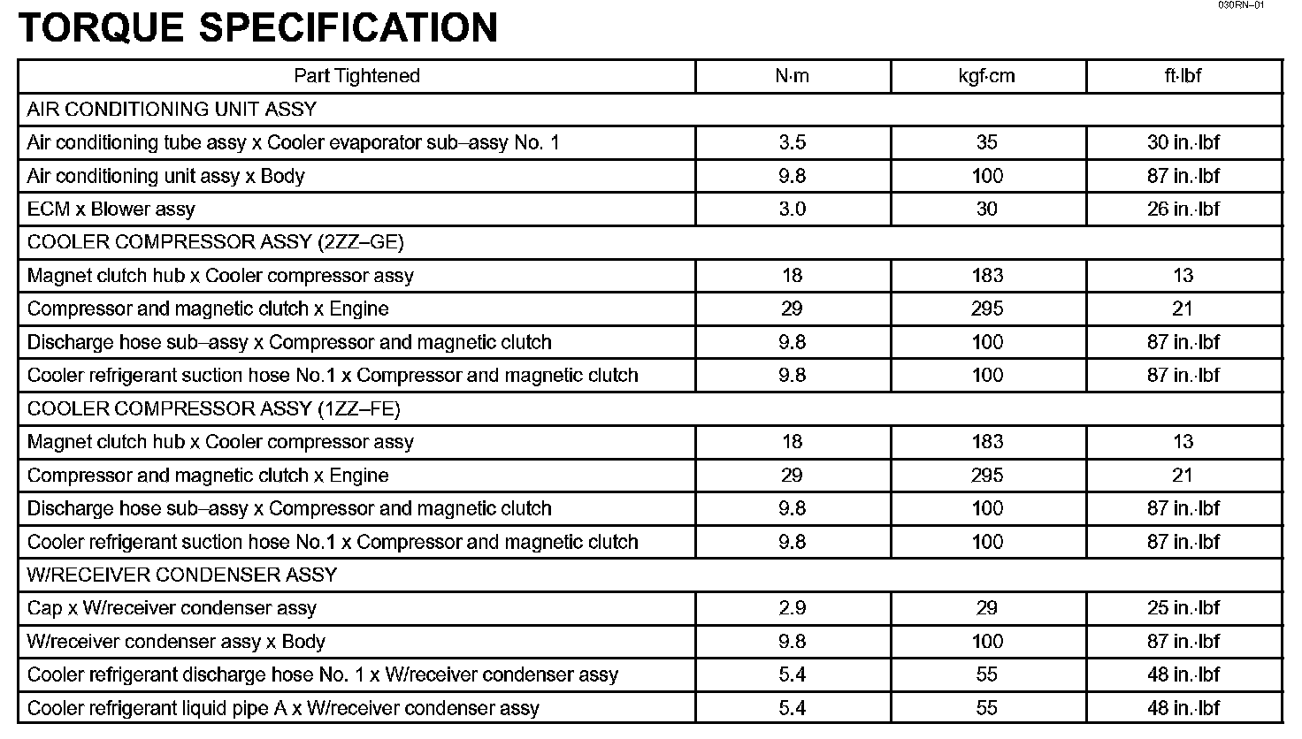 Heater And Air Conditioning - Torque Specification: