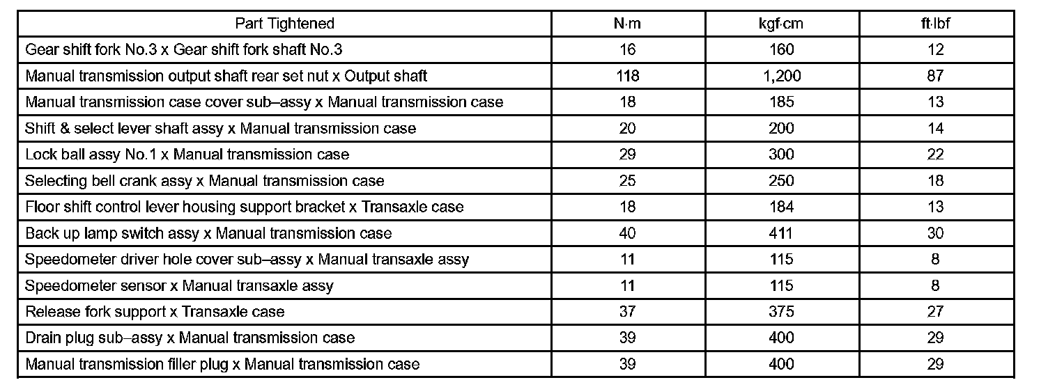 Manual Transmission/Transaxle - Torque Specification Part 1: