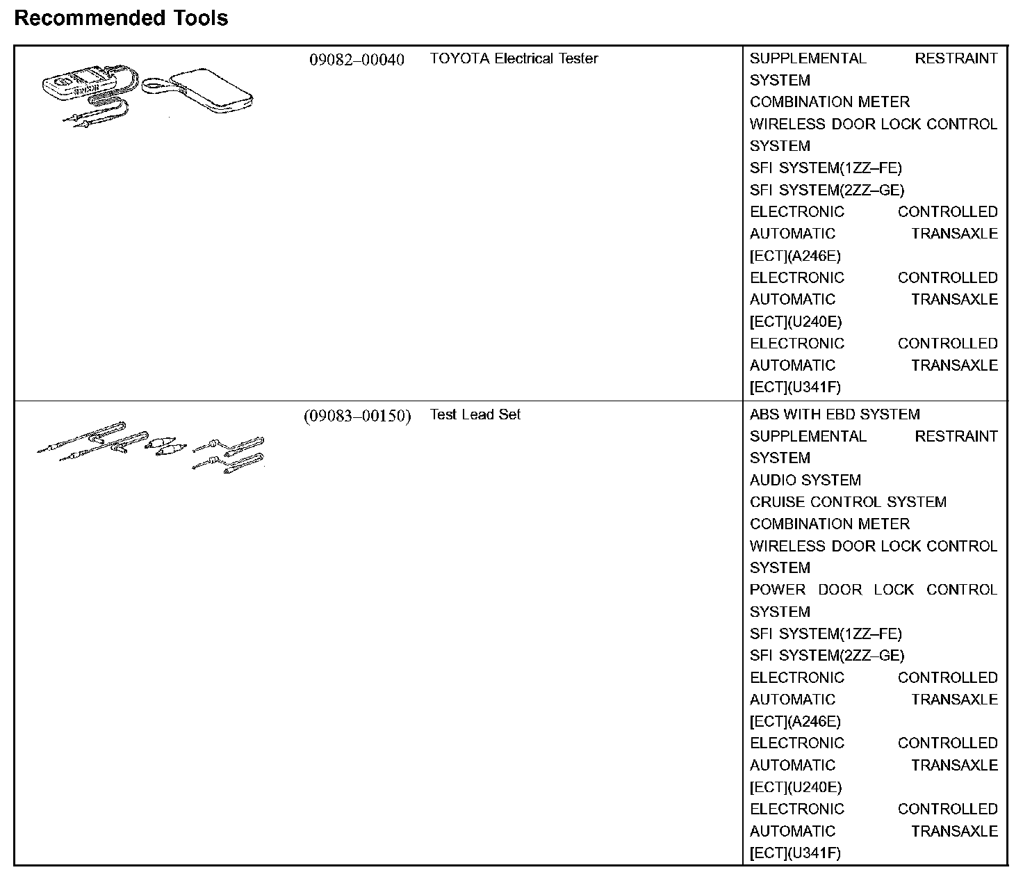 Diagnostics - Recommended Tools: