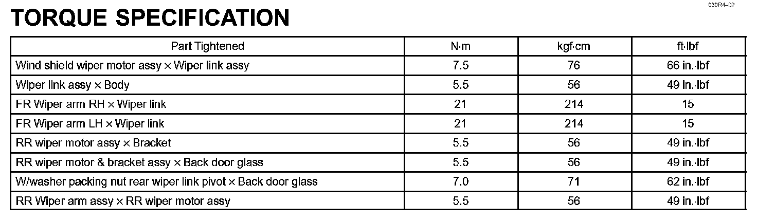 Wiper & Washer - Torque Specification: