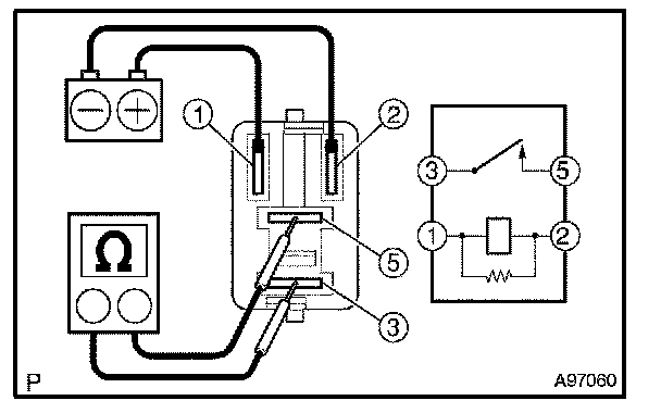 1. Using an ohmmeter, measure the resistance between the terminals.