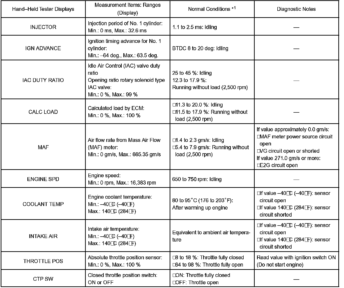 HINT: By reading the DATA LIST displayed on a hand-held tester or OBD II scan tool, you can check values, including those of the switches, sensors, and actuators, without removing any parts. Reading the DATA LIST as the first step of troubleshooting is one method of shortening diagnostic time.