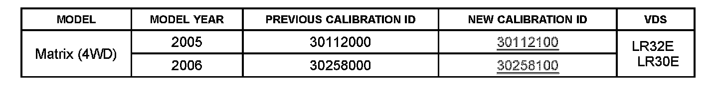 ^ Calibration ID(s) [Refer to the Calibration Identification Chart for the NEW CALIBRATION ID]
