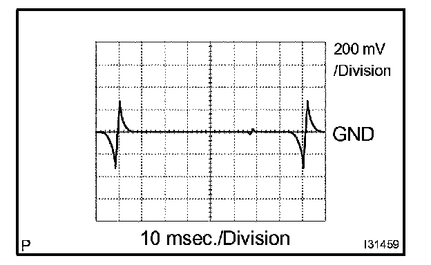 Waveform 2: Measure the waveform between terminal LCK1 (E6 23) of the ECM and body ground.
