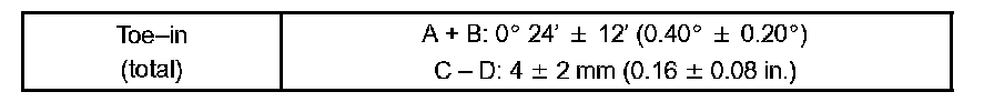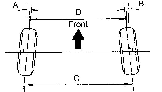 - If toe-in is not within the specified range, inspect the suspension parts and replace them if necessary.
