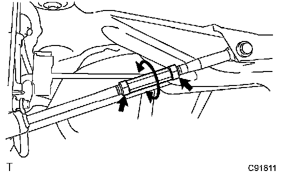 c. Turn the right and left adjusting tubes by an equal amount to adjust toe-in.