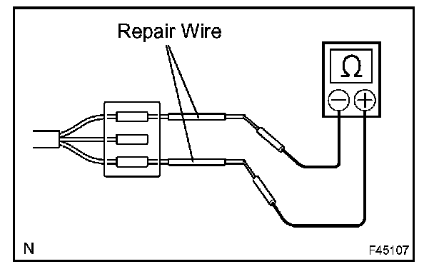 b. If it is impossible to check resistance from the back of the connector, use a repair wire to check it.