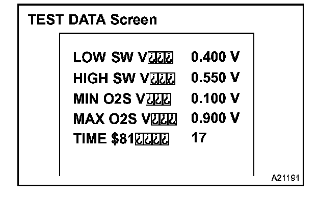 If the TEST DATA value appearing on the scan tool is out of the standard value, the O2S is malfunctioning. If it is within the standard value, the O2S is functioning normally. However, if the value is on the borderline of the standard value, the O2S may malfunction very soon.