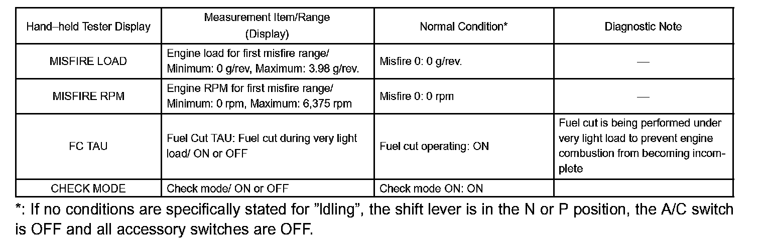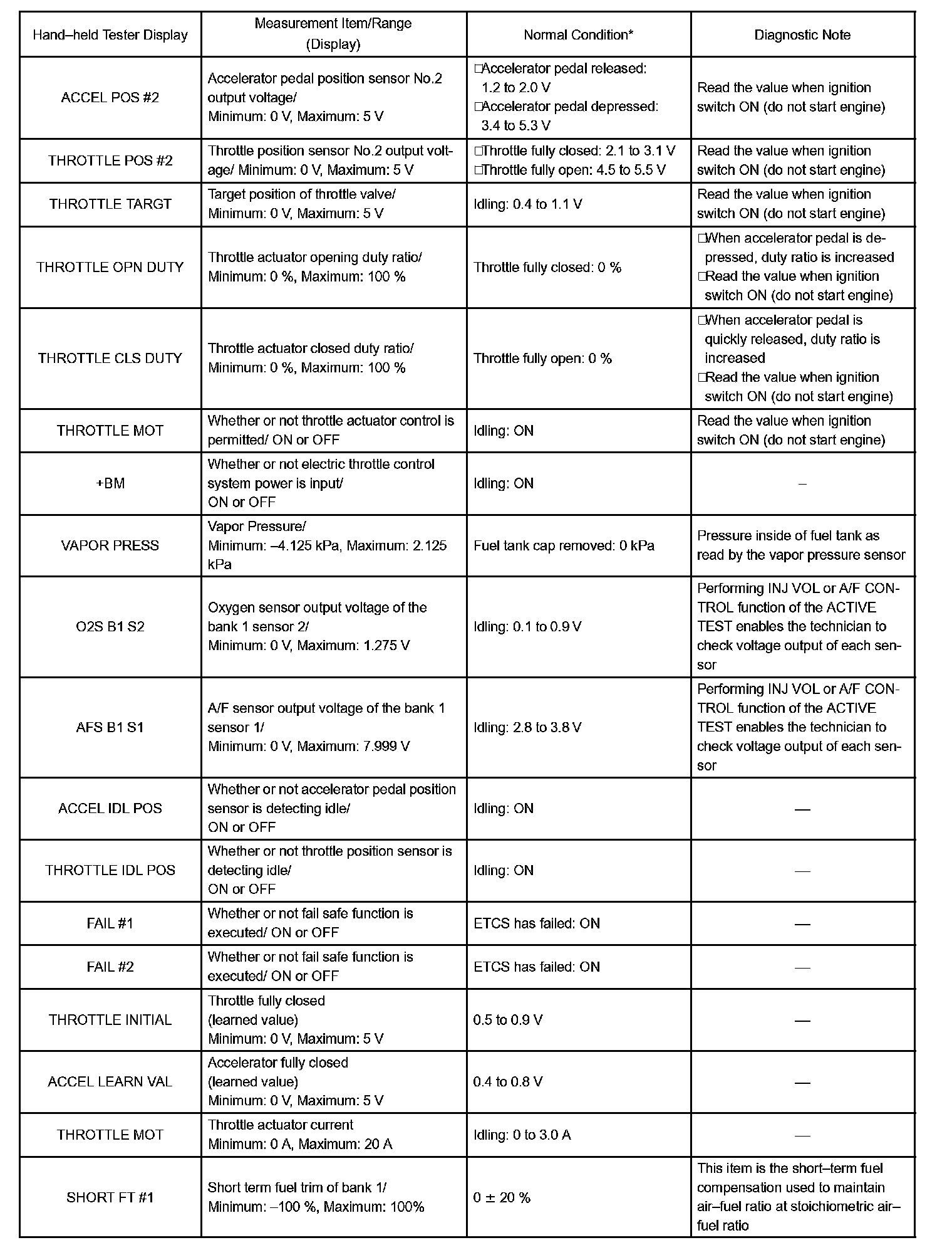 DATA LISTHINT: Using the hand-held tester's DATA LIST allows switch, sensor, actuator and other item values to be read without removing any parts. Reading the DATA LIST early in troubleshooting is one way to save time.