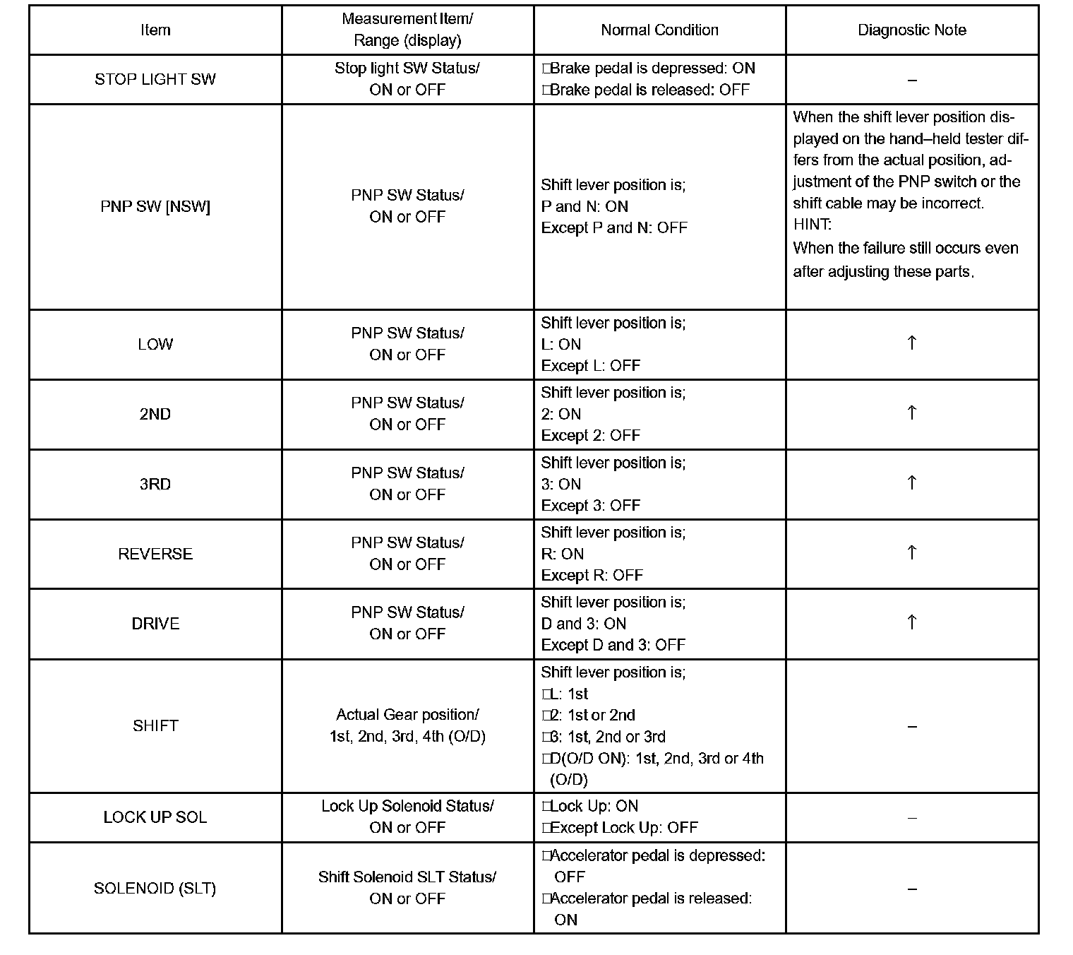 HINT: According to the DATA LIST displayed by the OBD II scan tool or hand-held tester, you can read the value of the switch, sensor, actuator and so on without parts removal. Reading the DATA LIST as the first step of troubleshooting is one method to shorten labor time.