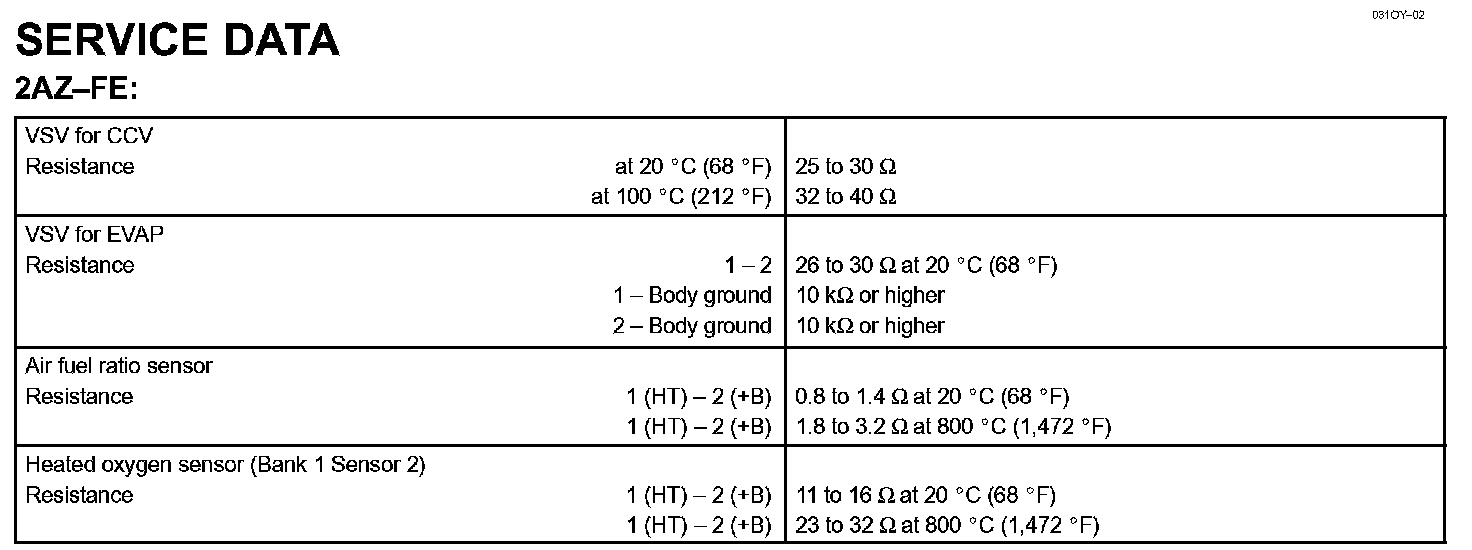 Emission Control - Service Data: