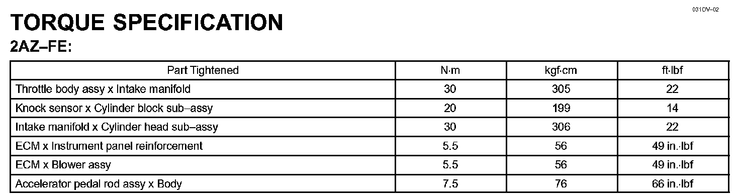 Engine Control System - Torque Specification:
