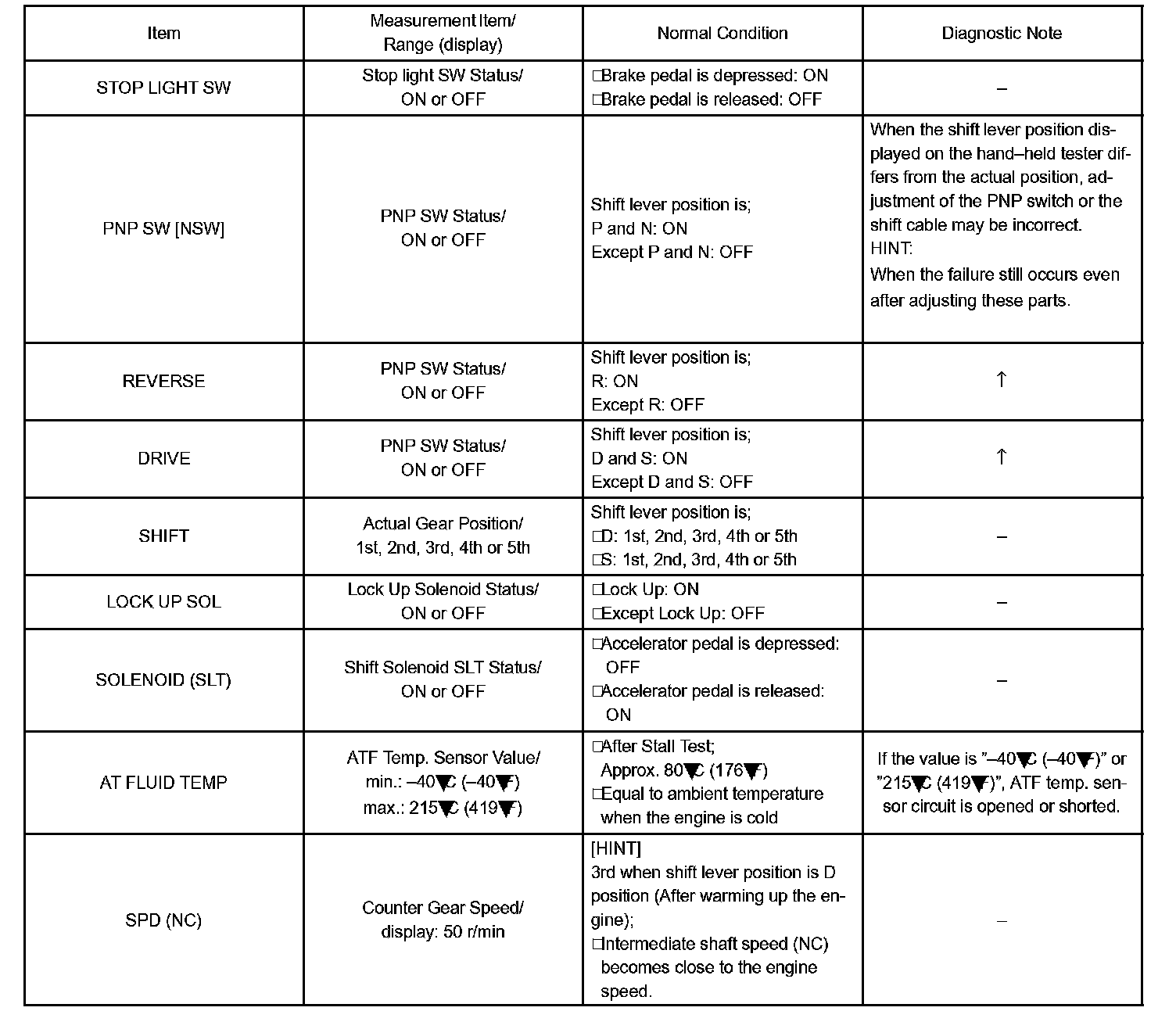 DATA LISTHINT: According to the DATA LIST displayed by the OBD II scan tool or hand-held tester, you can read the value of the switch, sensor, actuator and so on without parts removal. Reading the DATA LIST as the first step of troubleshooting is one method to shorten labor time.