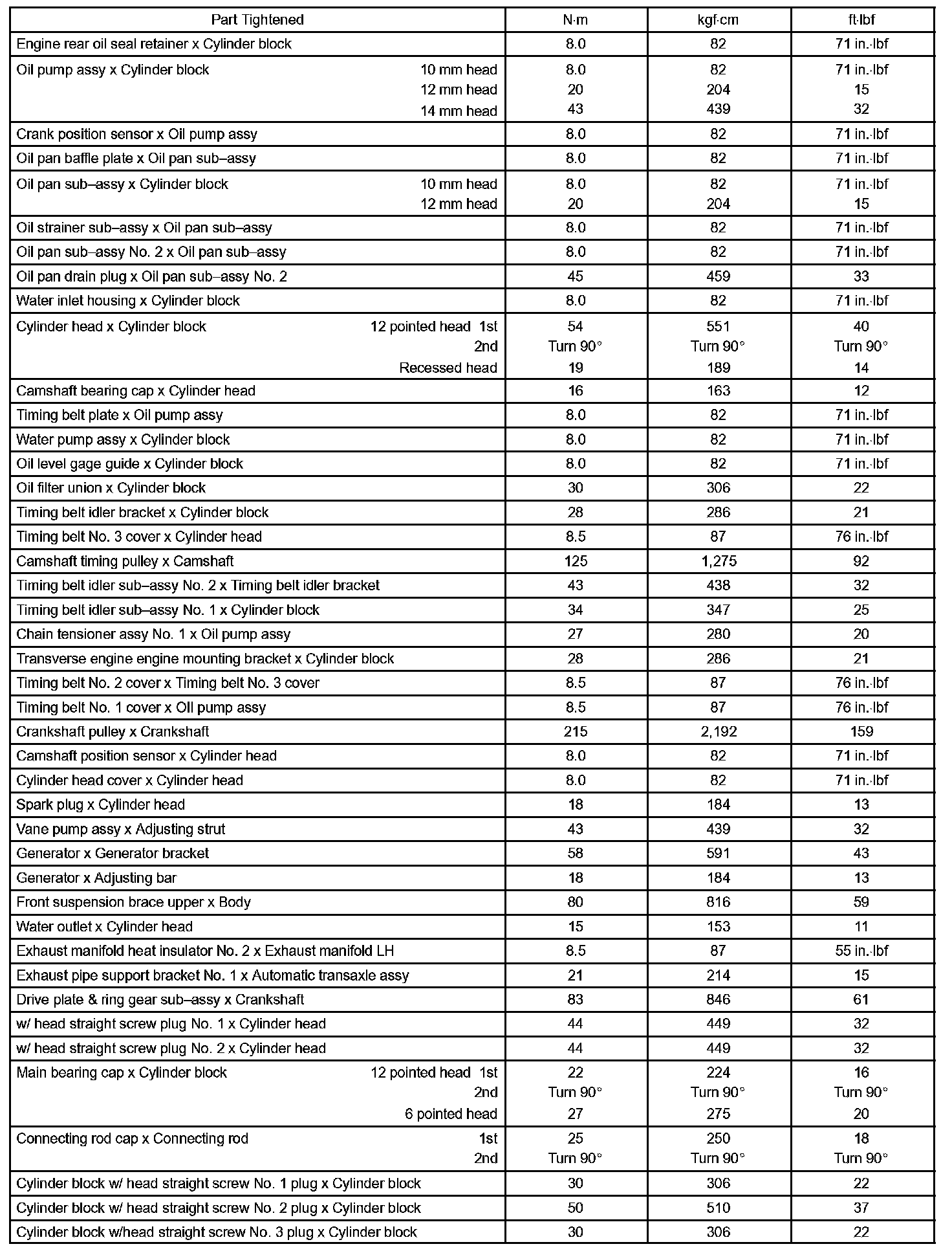 Engine Mechanical - Torque Specification Part 3: