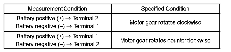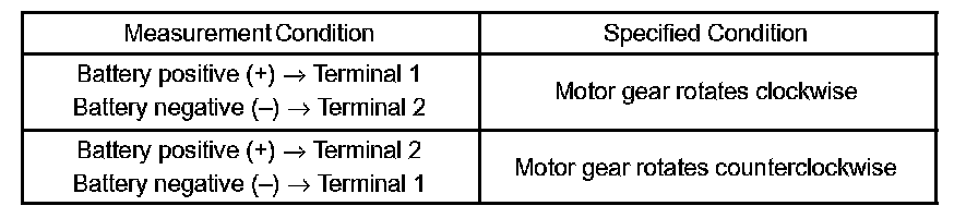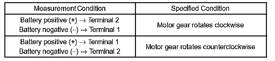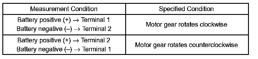 If the result is not as specified, replace the motor assembly.