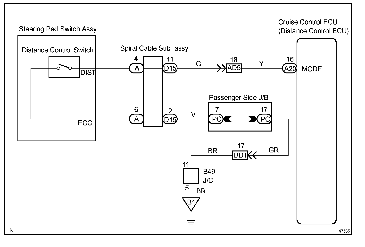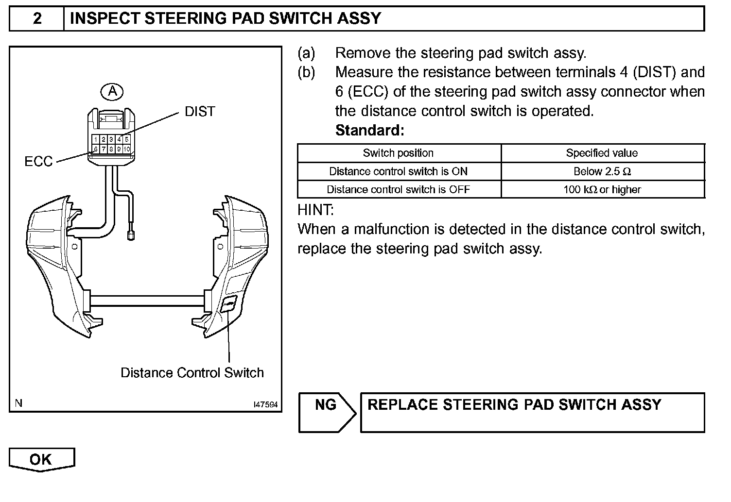 This switch sets the vehicle-to-vehicle distance mode.