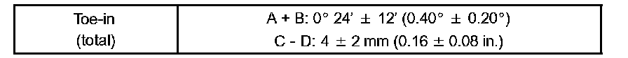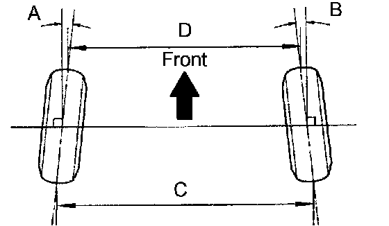 - If toe-in is not within the specified range, inspect the suspension parts and replace them if necessary.