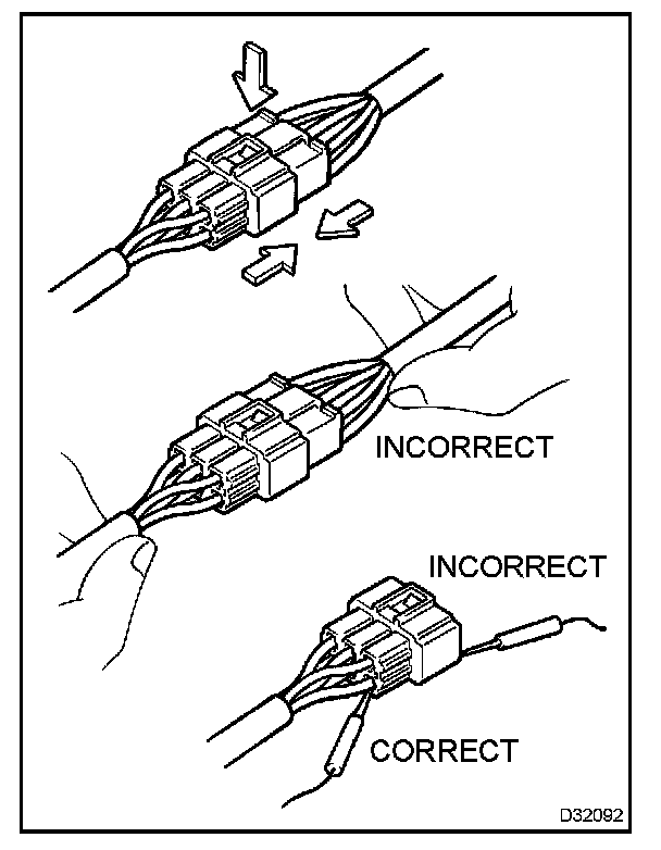 - As a waterproof connector cannot be checked from the backside, check by connecting a sub-harness.