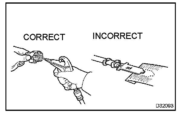 5. If checking a connector with a TOYOTA electrical tester, check the connector from the backside (harness side) using a mini test lead.