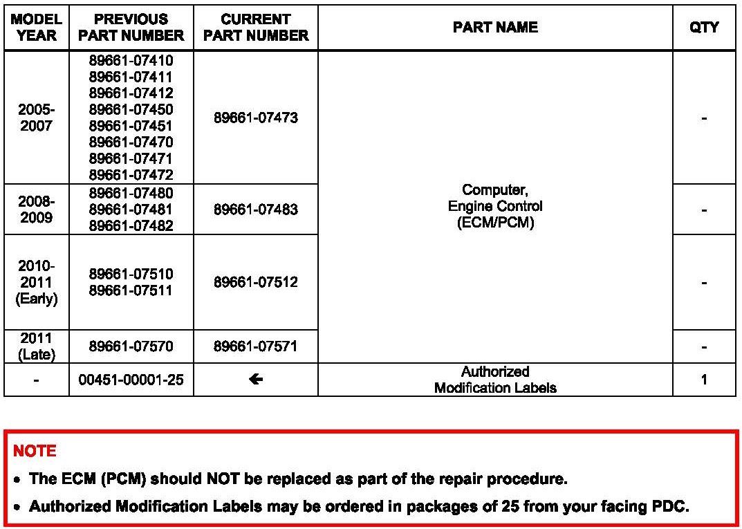 ^ ECM part number [Refer to the Parts Information section for the CURRENT PART NUMBER]