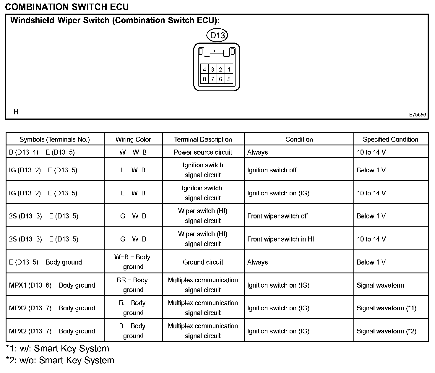 Terminals Of Control Module/Pinouts - Combination Switch ECU: