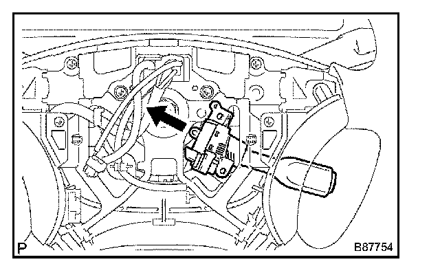 c. Pull out the cruise control main switch assembly in the direction shown by the arrow in the illustration.