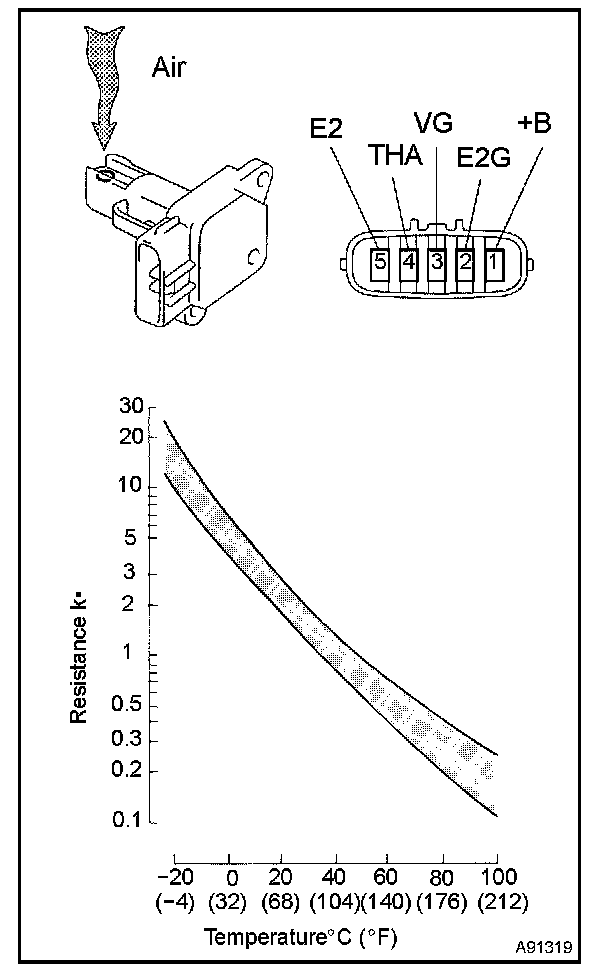 b. Measure the resistance between terminals 4 (THA) and 5 (E2).