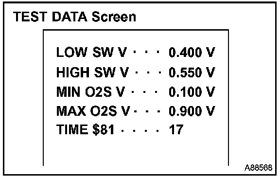 If the TEST DATA value appearing on the scan tool is out of the standard value, the O2S is malfunctioning. If it is within the standard value, the O2S is functioning normally. However, if the value is on the borderline of the standard value, the O2S may malfunction very soon.