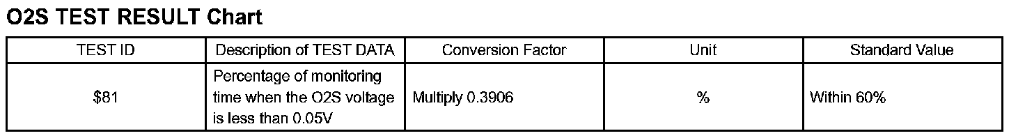 2. Find the conversion factor value of "TIME $81" in the O2S TEST RESULT chart. 0.3906 is specified for $81 in this chart.