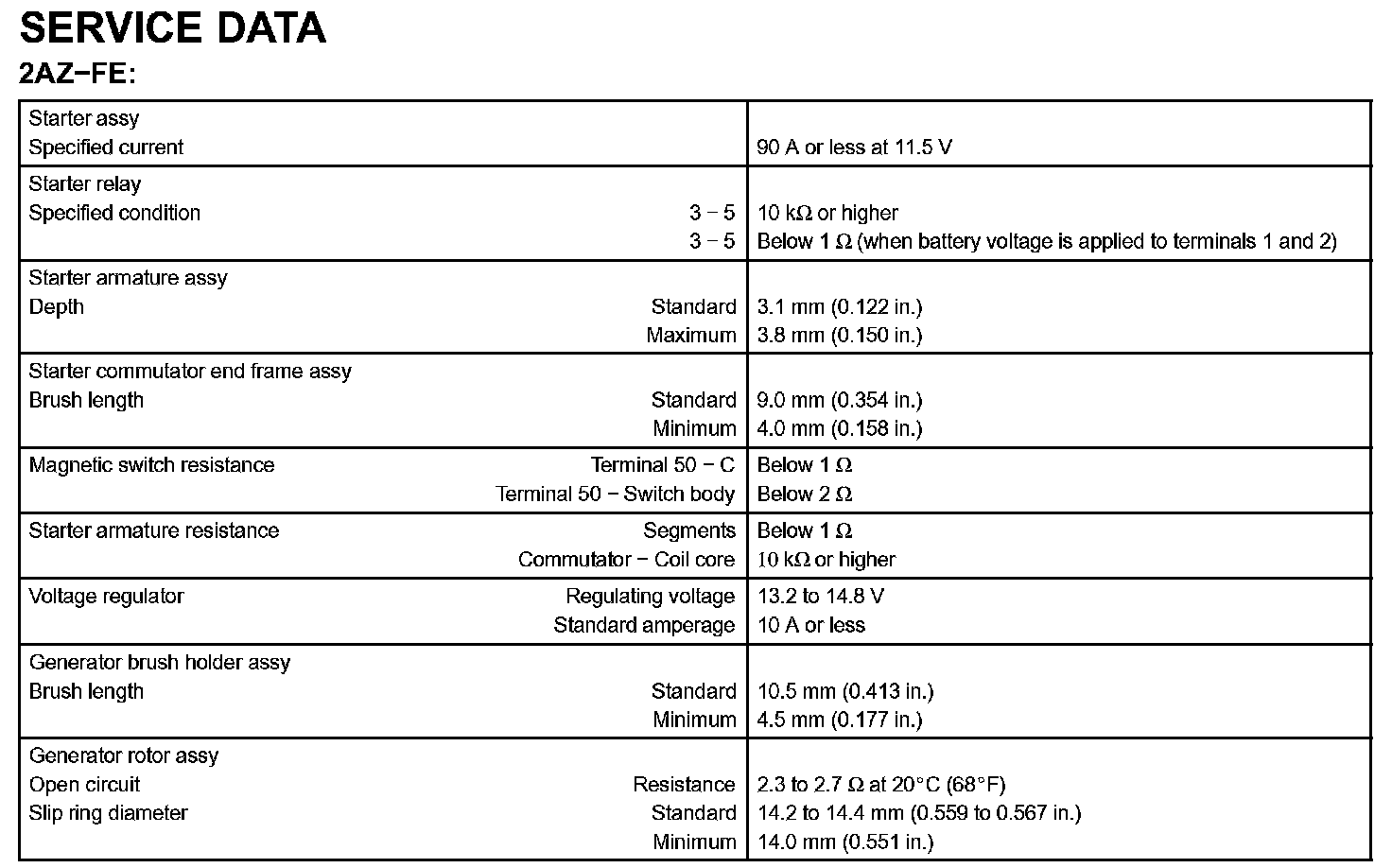 Starting & Charging-Service Data: