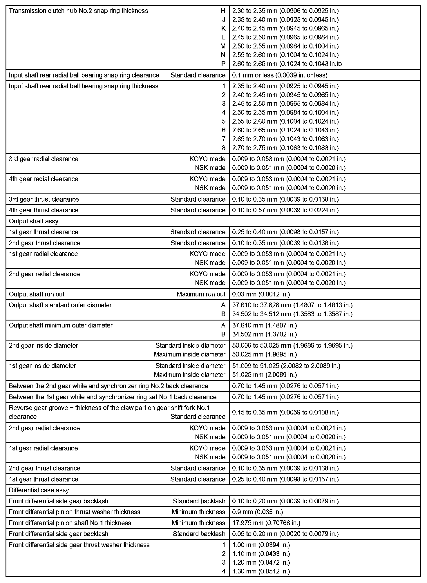 Manual Transmission / Transaxle-Service Data (Part 2):