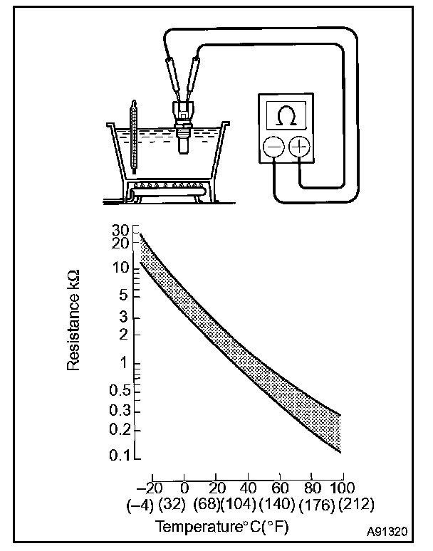 NOTE: If checking the engine coolant temperature sensor in the water, keep the terminals dry. After the check, wipe the sensor dry.