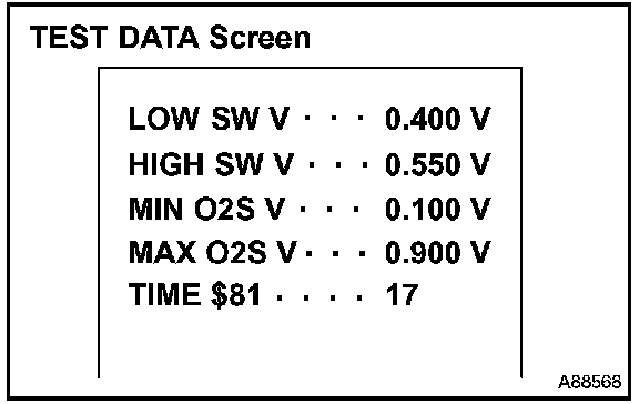 If the TEST DATA value appearing on the scantool is out of the standard value, the O2S is malfunctioning. If it is within the standard value, the O2S is functioning normally. However, if the value is on the borderline of the standard value, the O2S may malfunction very soon.