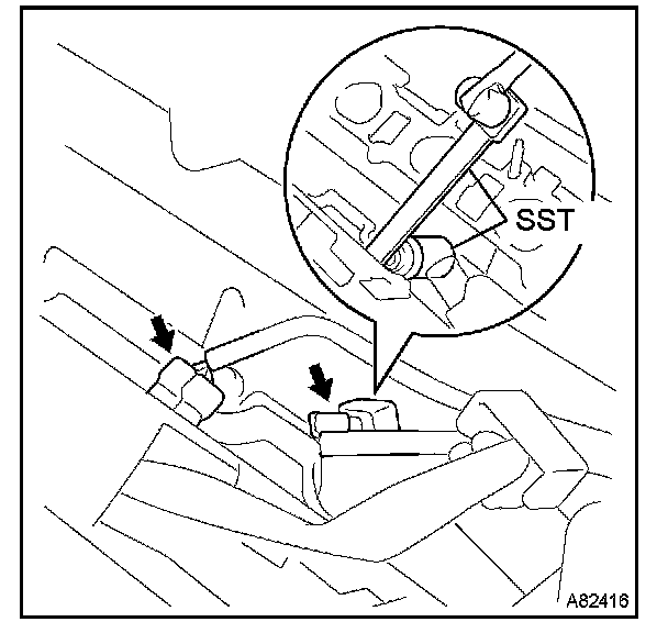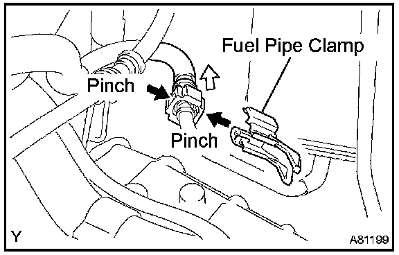 2. Pinch the tube connector and then pull out the fuel pipe No. 1.