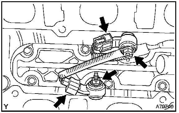 a. Install the 2 knock sensors with the 2 nuts, as shown in the illustration.