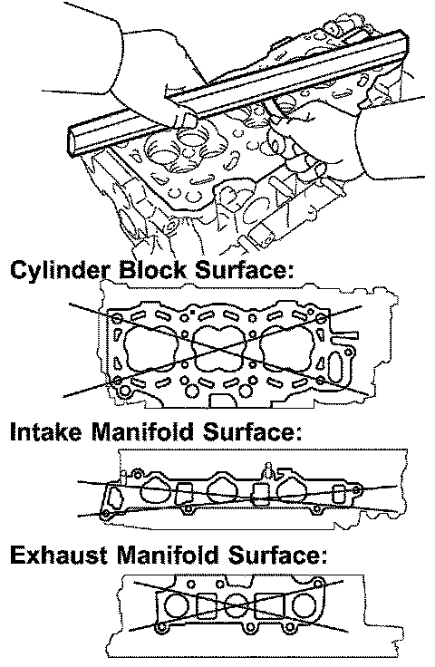 a. Using a precision straight edge and a feeler gauge, mea sure the surface contacting the cylinder block and the manifolds for warpage.