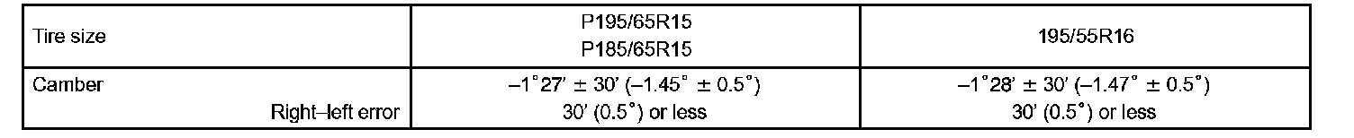 HINT: Camber is not adjustable. If the measurement is not within the specified range, inspect the suspension parts for damage and/or wear, and replace them if necessary.