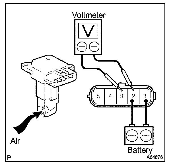 3. Blow air into the mass air flow meter, then check that the voltage fluctuates.
