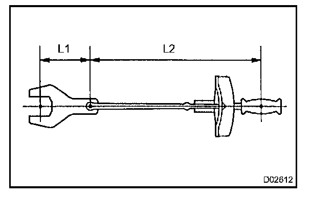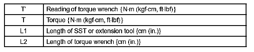 2. Use the formula below to calculate special torque values for situations where SST or an extension tool is combined with the torque wrench.