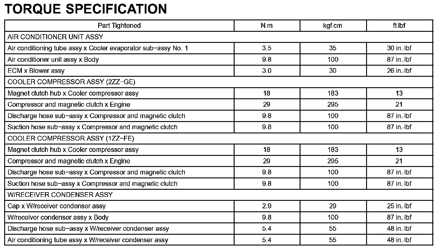 Heater & Air Conditioner-Torque Specification: