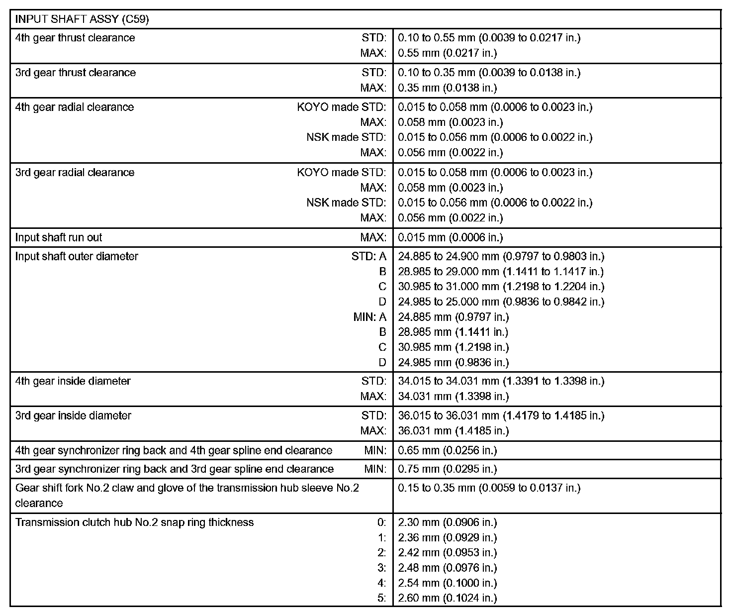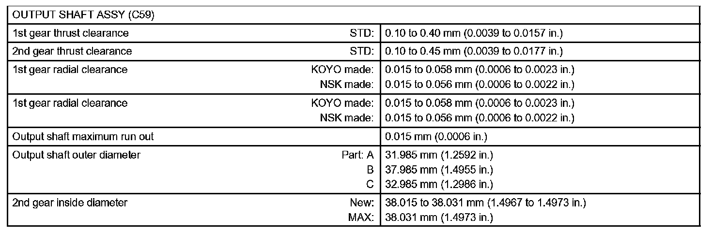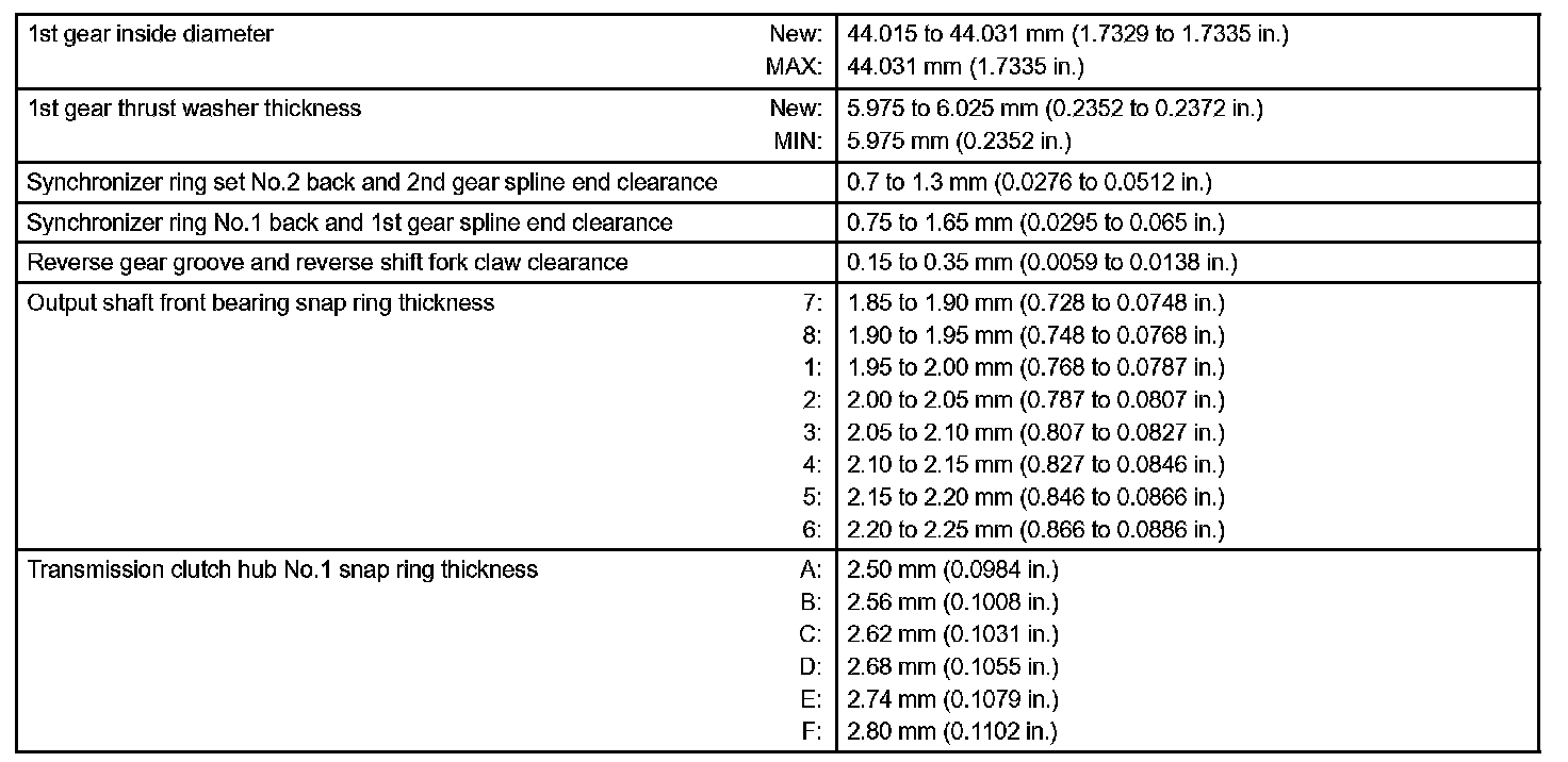 Manual Transmission / Transaxle-Service Data (Part 2):