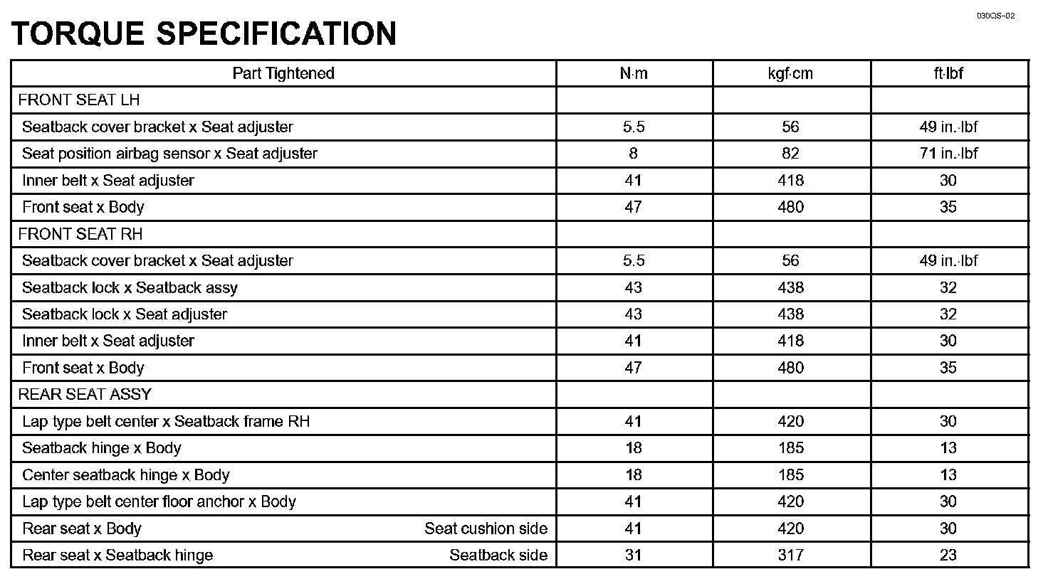 Seat-Torque Specification: