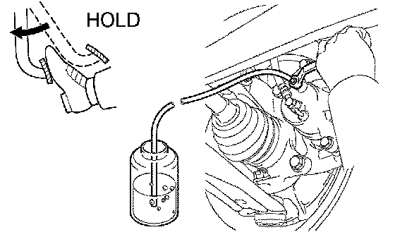 3) When fluid stops coming out, tighten the bleeder plug and release the brake pedal.