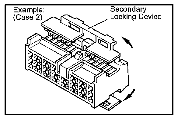 b. Use a special tool or the terminal pick to unlock the secondary locking device or terminal retainer.