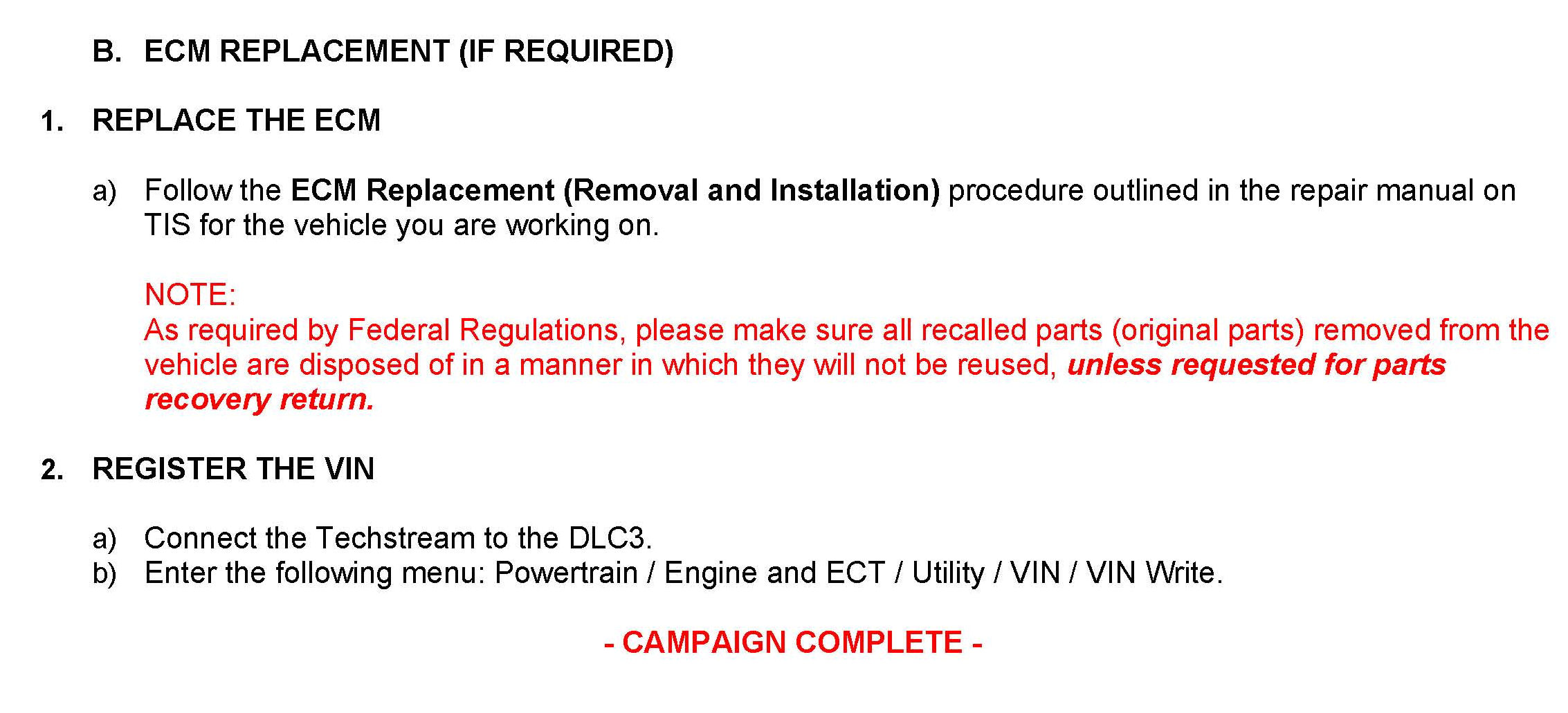 Recall - ECM Replacement For Stalling Condition