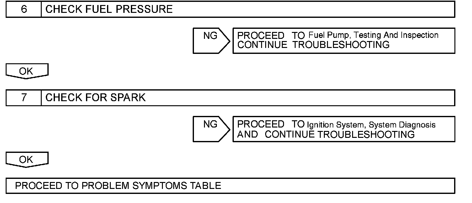 BASIC INSPECTIONWhen a malfunction is not confirmed by the DTC check, troubleshooting should be carried out in all circuits considered to be possible causes of the problem. In many cases, by carrying out the basic engine check shown in the given flowchart, the location of the problem can be found quickly and efficiently. Therefore, using this check is essential for engine troubleshooting.