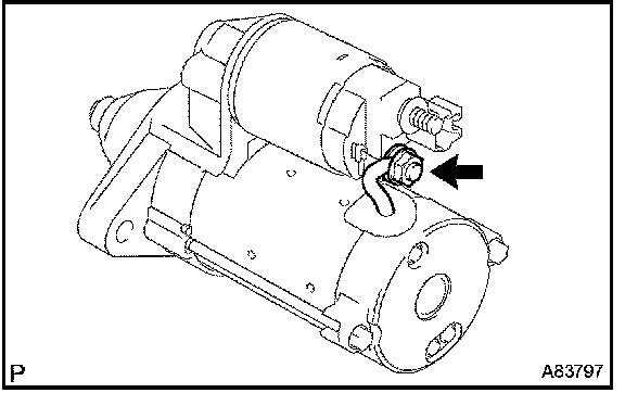 1. Disconnect the negative (-) lead from the starter body. Check that the clutch pinion gear returns.