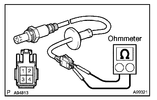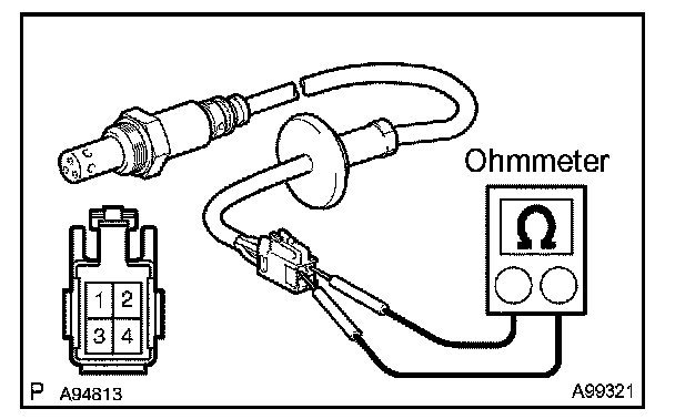 INSPECT HEATED OXYGEN SENSORa. Check the resistance. (Bank 1 Sensor 1)