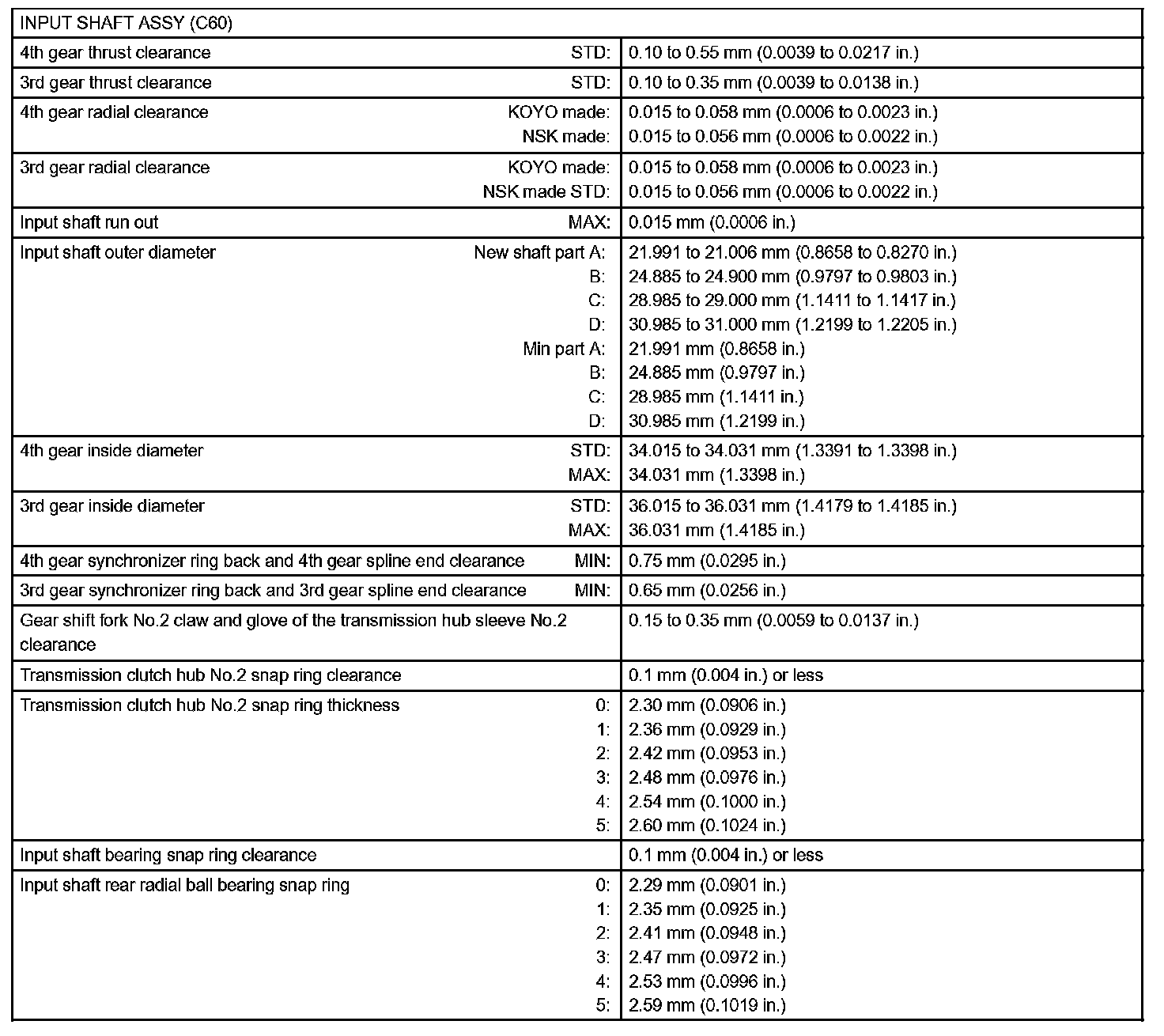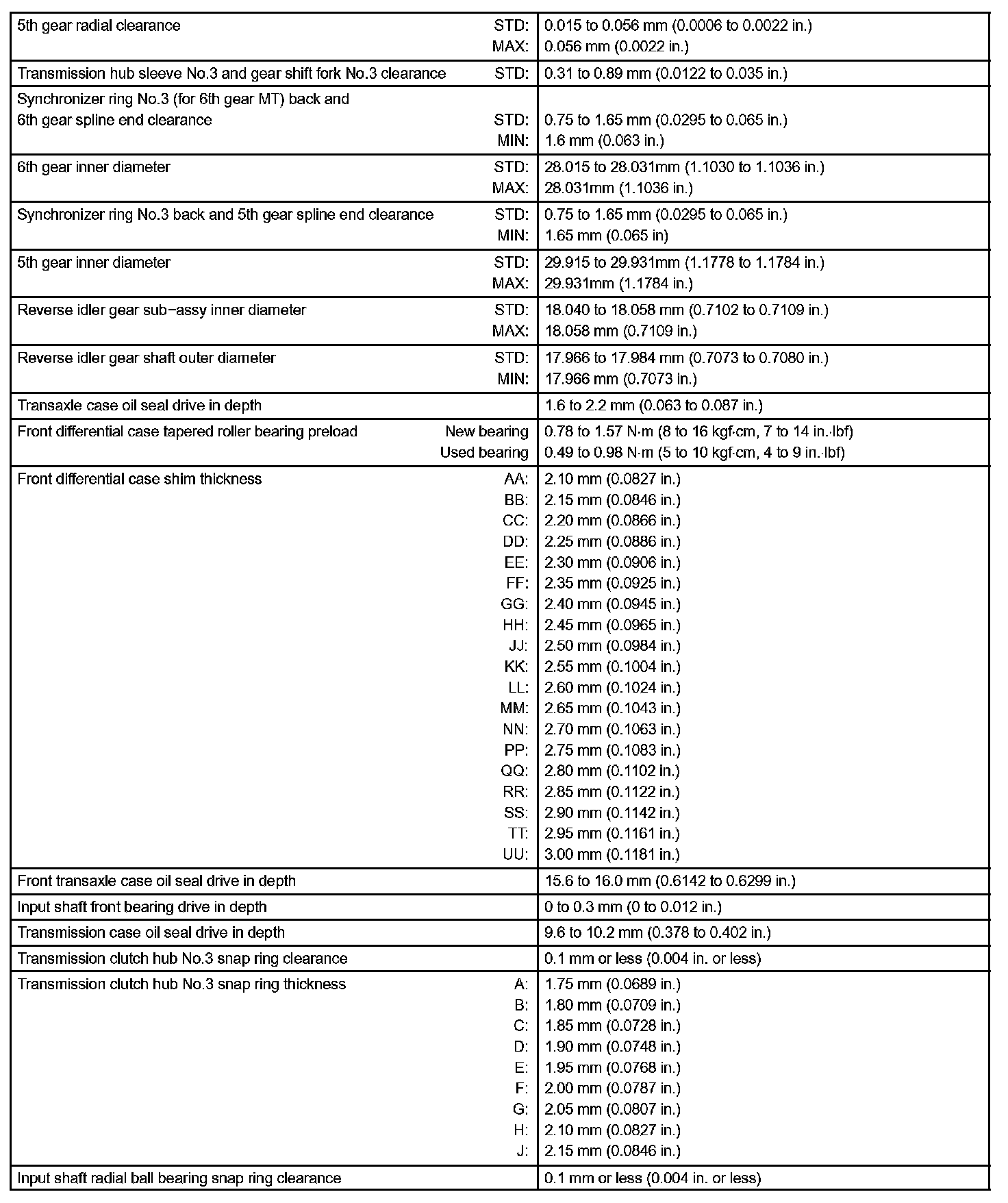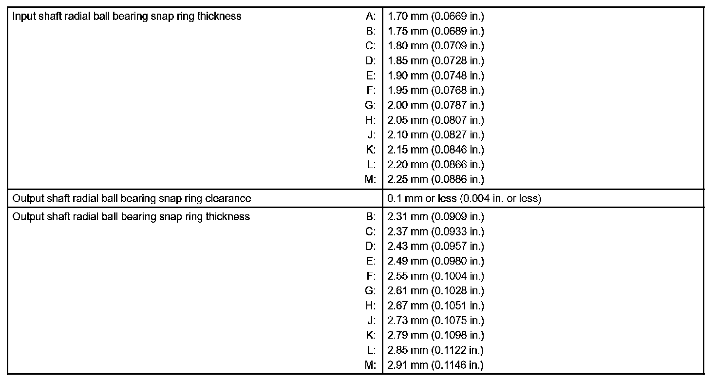 Manual Transmission / Transaxle-Service Data (Part 2):
