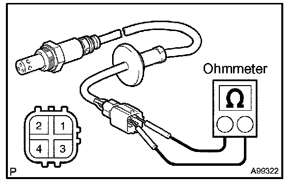 INSPECT HEATED OXYGEN SENSORa. Check the resistance. (Bank 1 Sensor 1)